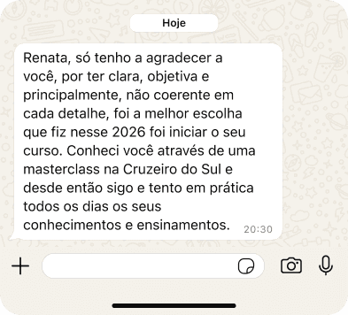Você tem acesso a um canal direto para trazer os desafios reais da sua liderança e receber orientação prática. Porque algumas decisões não podem esperar a próxima aula.